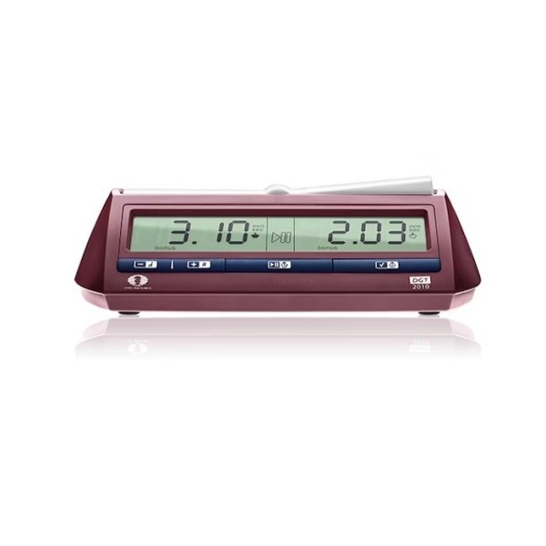 La pendule pour jeu d'échecs DGT a été adoptée par les joueurs du monde entier et choisie par la Fédération Internationale des Echecs comme pendule officielle. Fonctionne 2.000 heures avec deux piles AA. Toutes les cadences des plus simples au plus subtiles sont programmables. Simple et efficace dans son réglage et son fonctionnement.